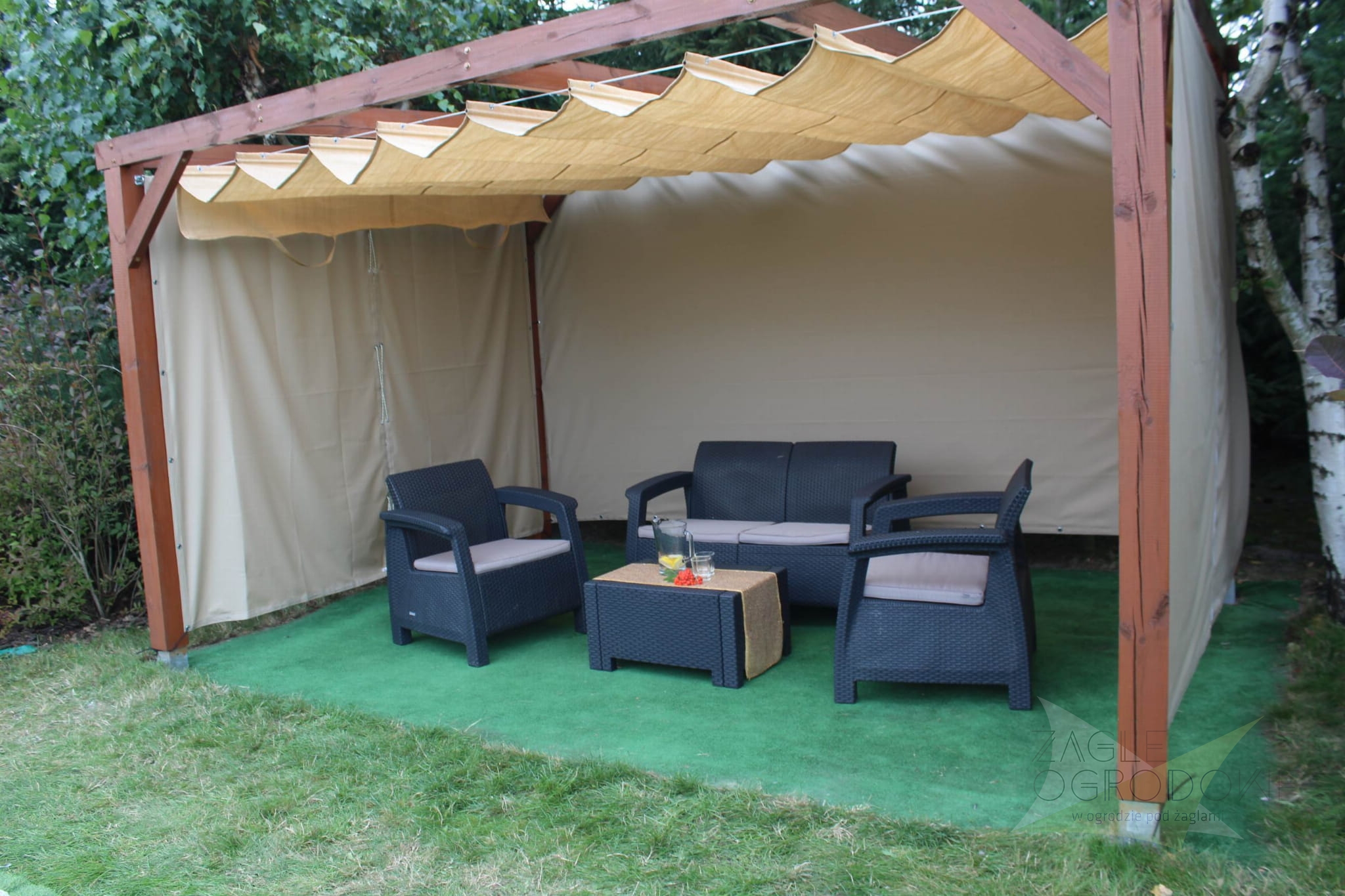 - Volant, mit dem die Jalousie fertig ist, schützt auch vor der untergehenden Sonne,