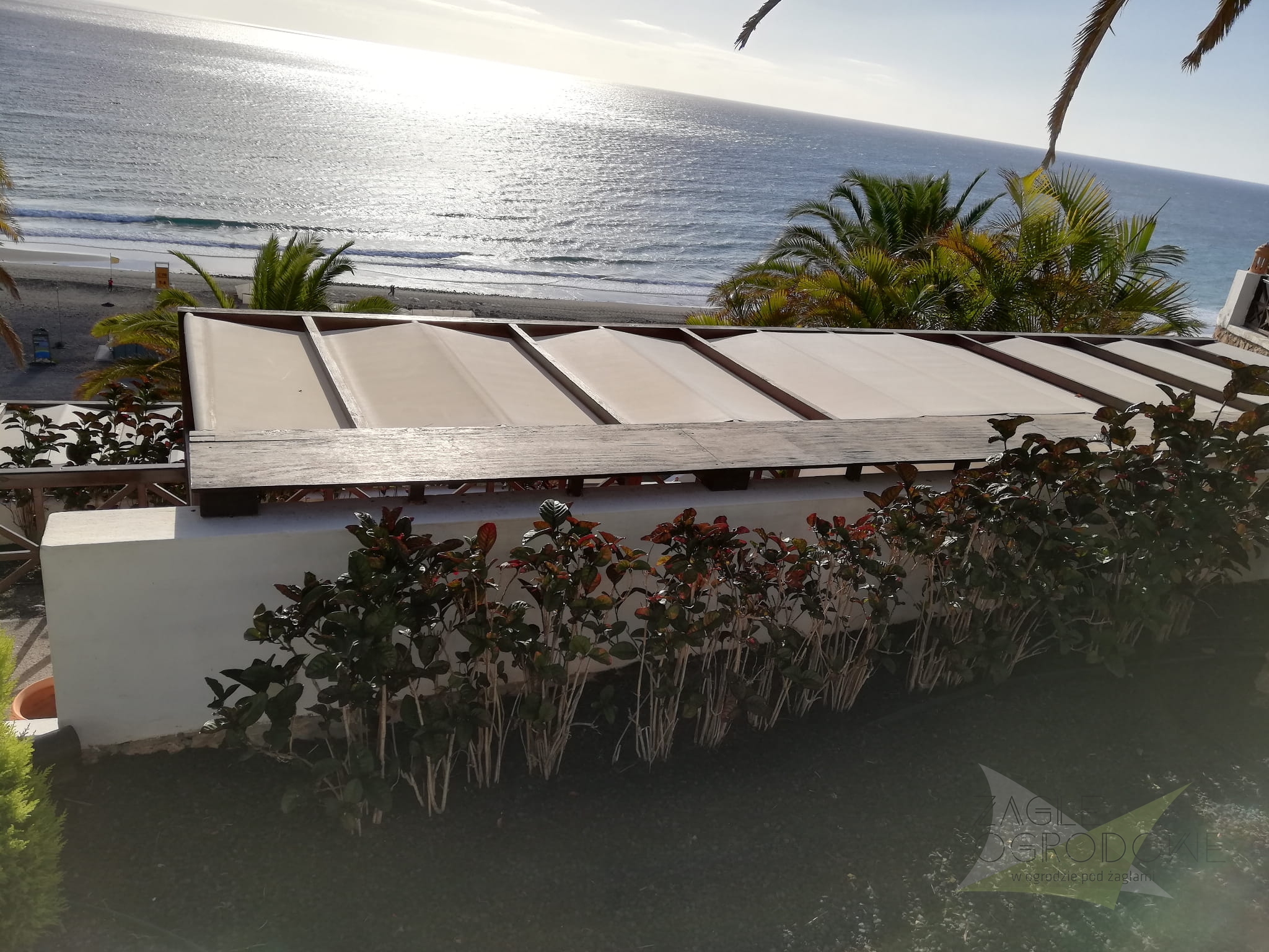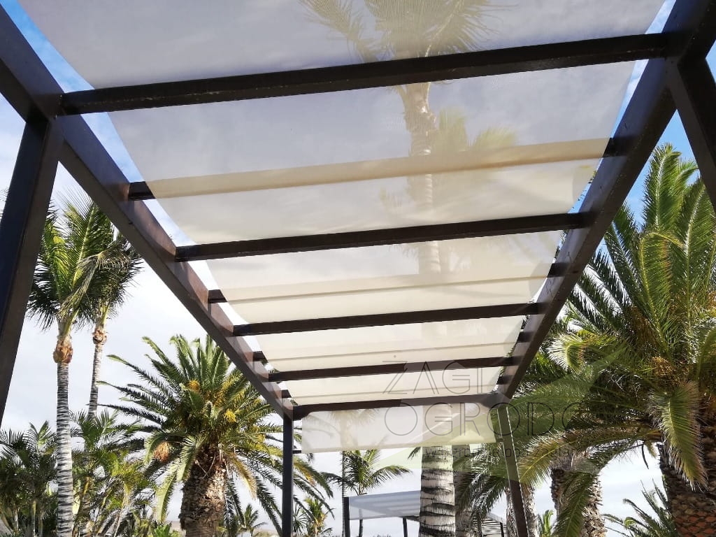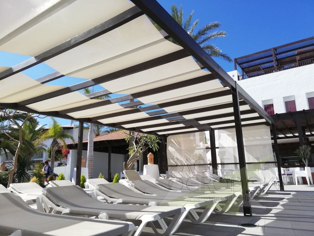 - Schaffung einer Schattenzone und eines Windschutzes über dem Gartenpool,