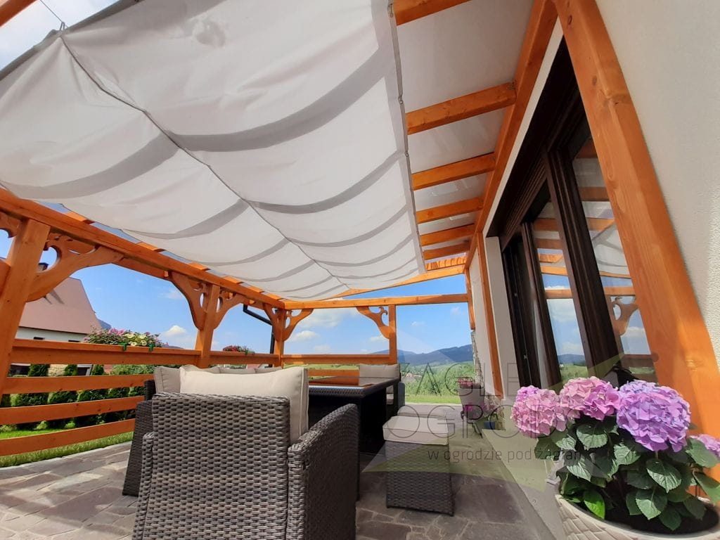 MONTAGE-KIT für Holz für Segel, die auf 3 Linien gleiten. Am häufigsten zur Montage von Segeln auf Pergolen und Holzpavillons.