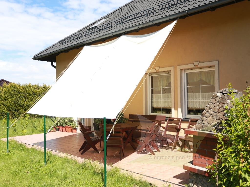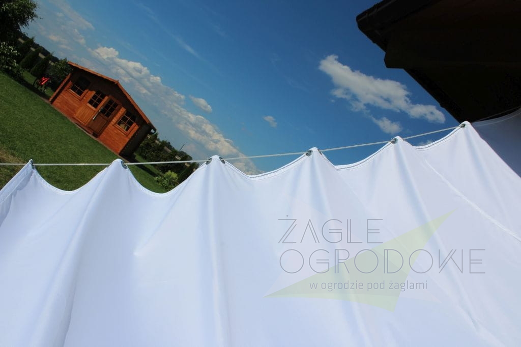 Durch die Befestigungsösen an den Rändern des Segels wird eine Stahlschnur geführt, mit der das Segel je nach aktuellem Bedarf ausgefahren oder eingefahren werden kann. Montagezubehör finden Sie auf unseren anderen Auktionen.