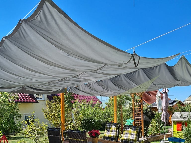 - hat die Funktion des Rollens und Entfaltens, wodurch es sich an die aktuelle Wettersituation und die Bedürfnisse des Eigentümers anpassen kann,