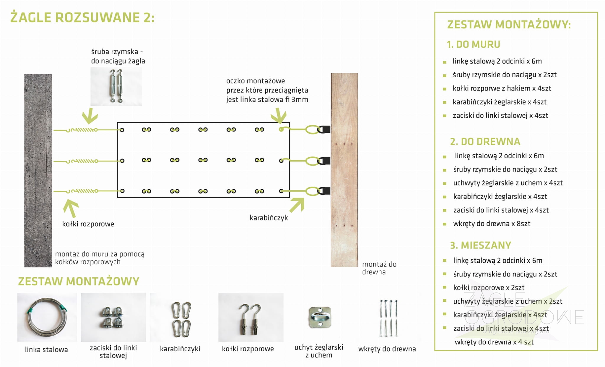 Toldos con vela corredera en 3 líneas: Kit de anclaje para MADERA