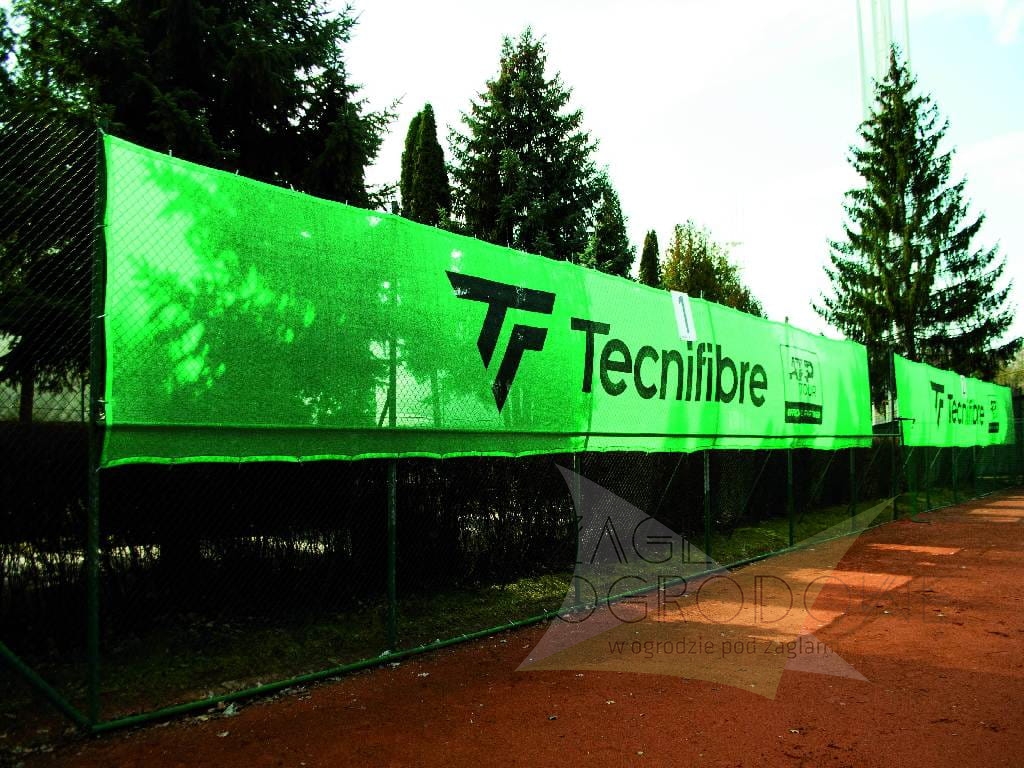 Los protectores se utilizan principalmente para proteger contra el sol y el viento, mejorando la comodidad del entrenamiento en la cancha. Los cortavientos para canchas de tenis están hechos en un tejido de alta resistencia con un gramaje de 200 g/m², sólo de color verde. Además de sus propiedades prácticas, los protectores pueden utilizarse también para fines de publicidad. La impresión se realiza únicamente en negro, en tecnología UV. El acabado estándar incluye ojales de montaje distribuidos a intervalos de unos 50cm alrededor de la malla.