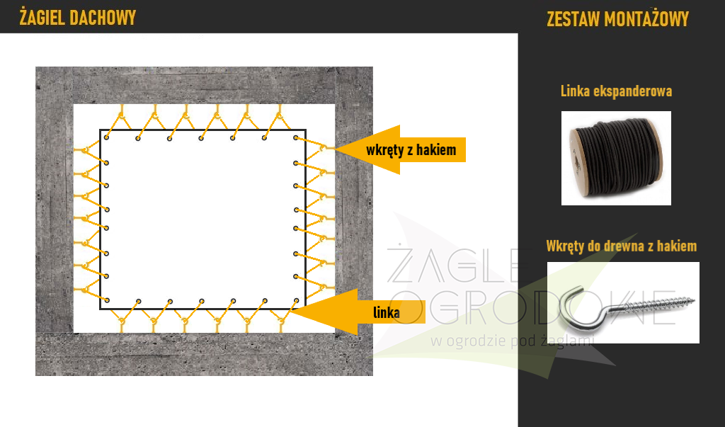 El margen para los ojales recomendado para los toldos vela que se fijan en las esquinas es de 10cm. Ejemplo: para una vela de 3x3m, la distancia entre los puntos de anclaje debe ser de 3,10x3,10m.