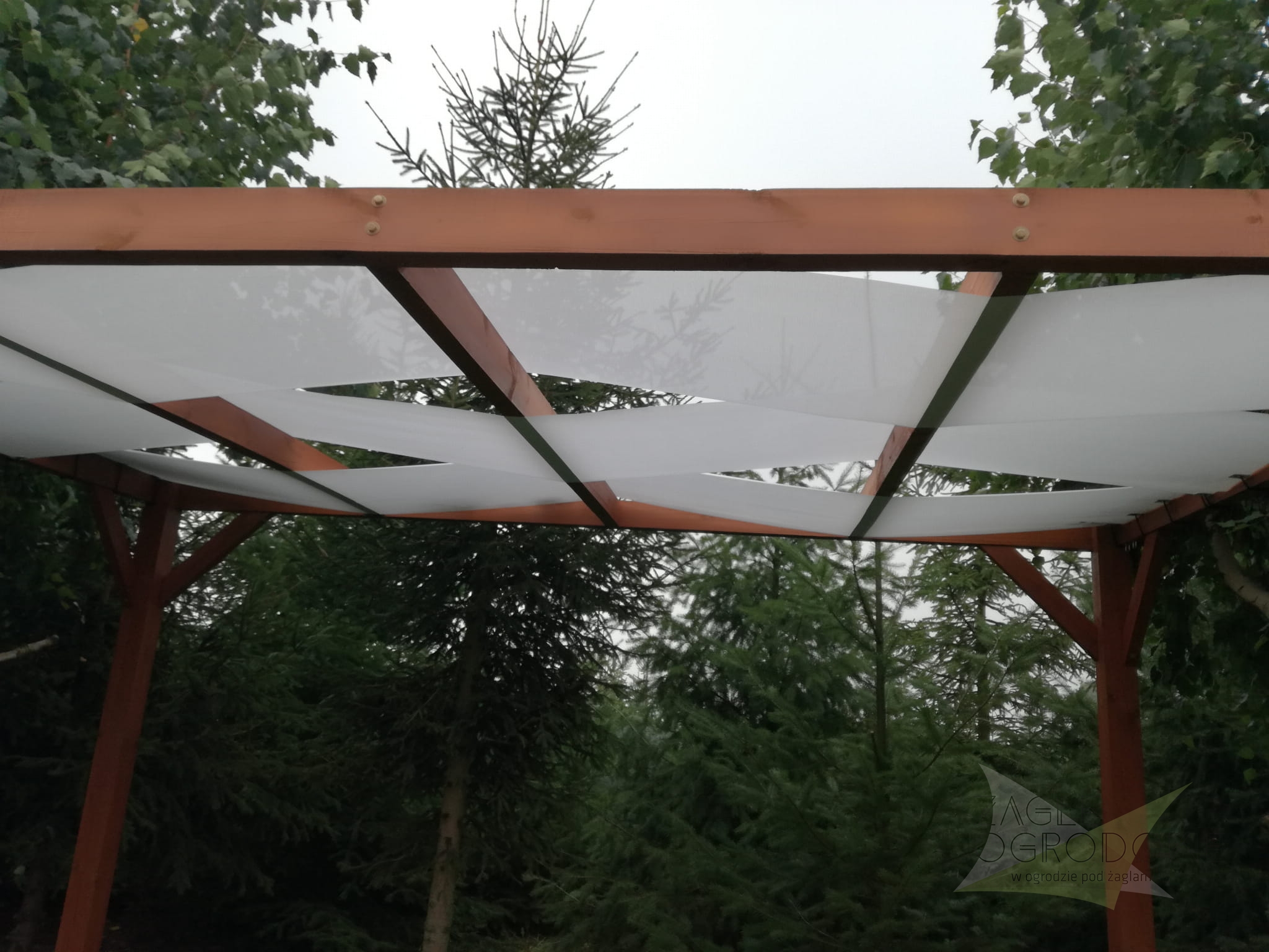 Toldo en forma de banda para cenadores color blanco personalizado a medida