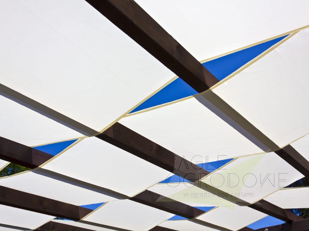 Los toldos sombra en forma de banda para cenadores tienen ojales de fijación en los laterales más cortos.
