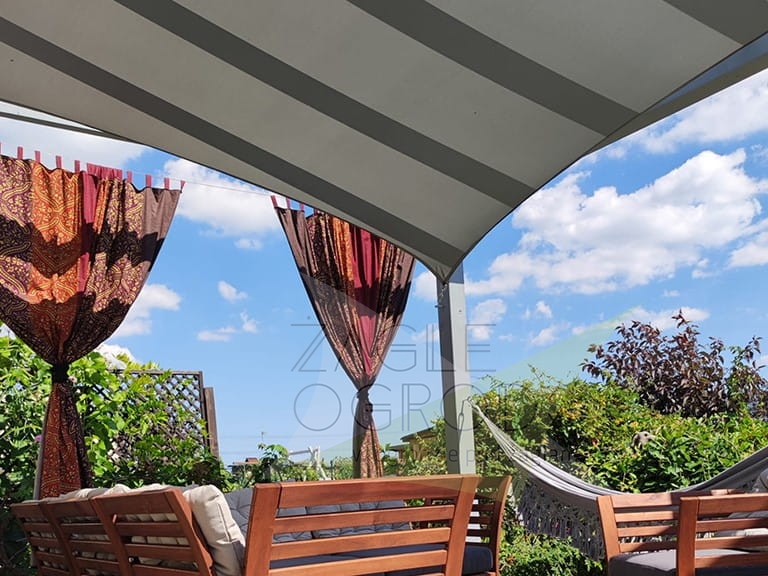 - hecho en tejido decorativo versión premium de 200 g/m² que garantiza protección contra los rayos del sol y la lluvia ligera