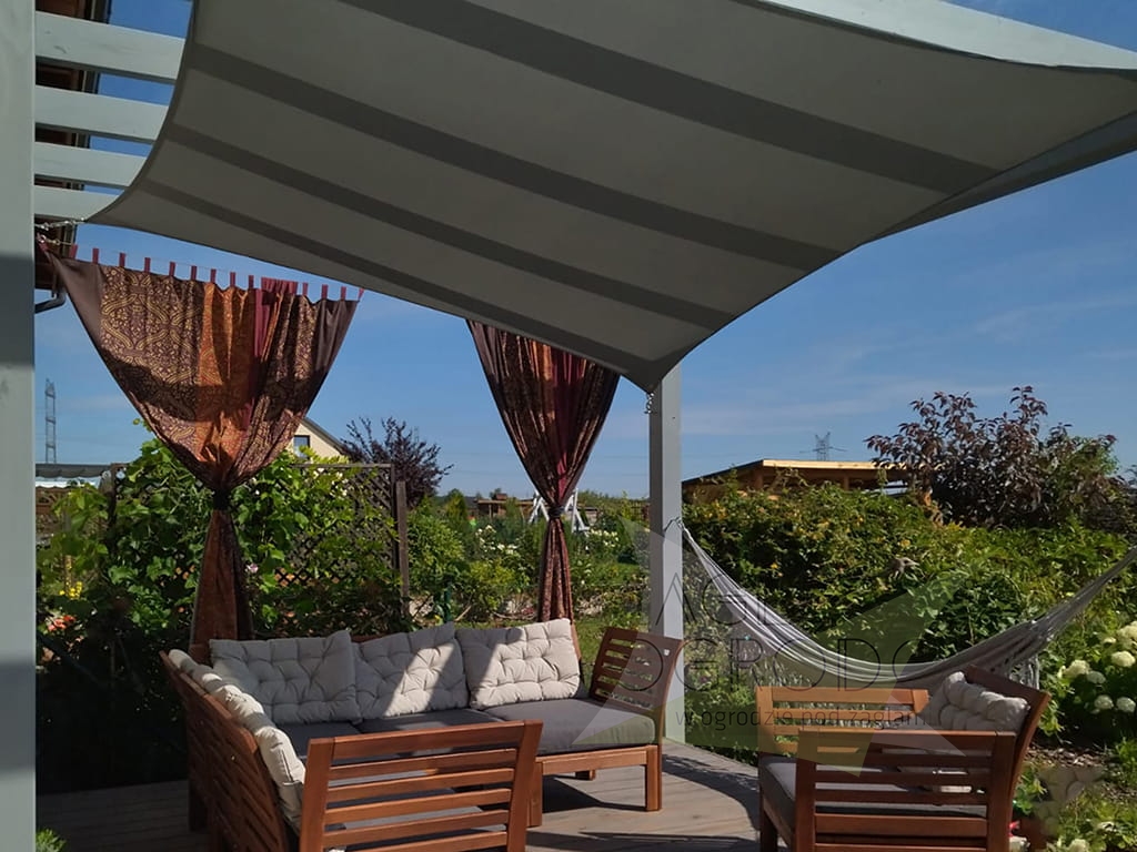 - hecho en tejido decorativo versión premium de 200 g/m² que garantiza protección contra los rayos del sol y la lluvia ligera