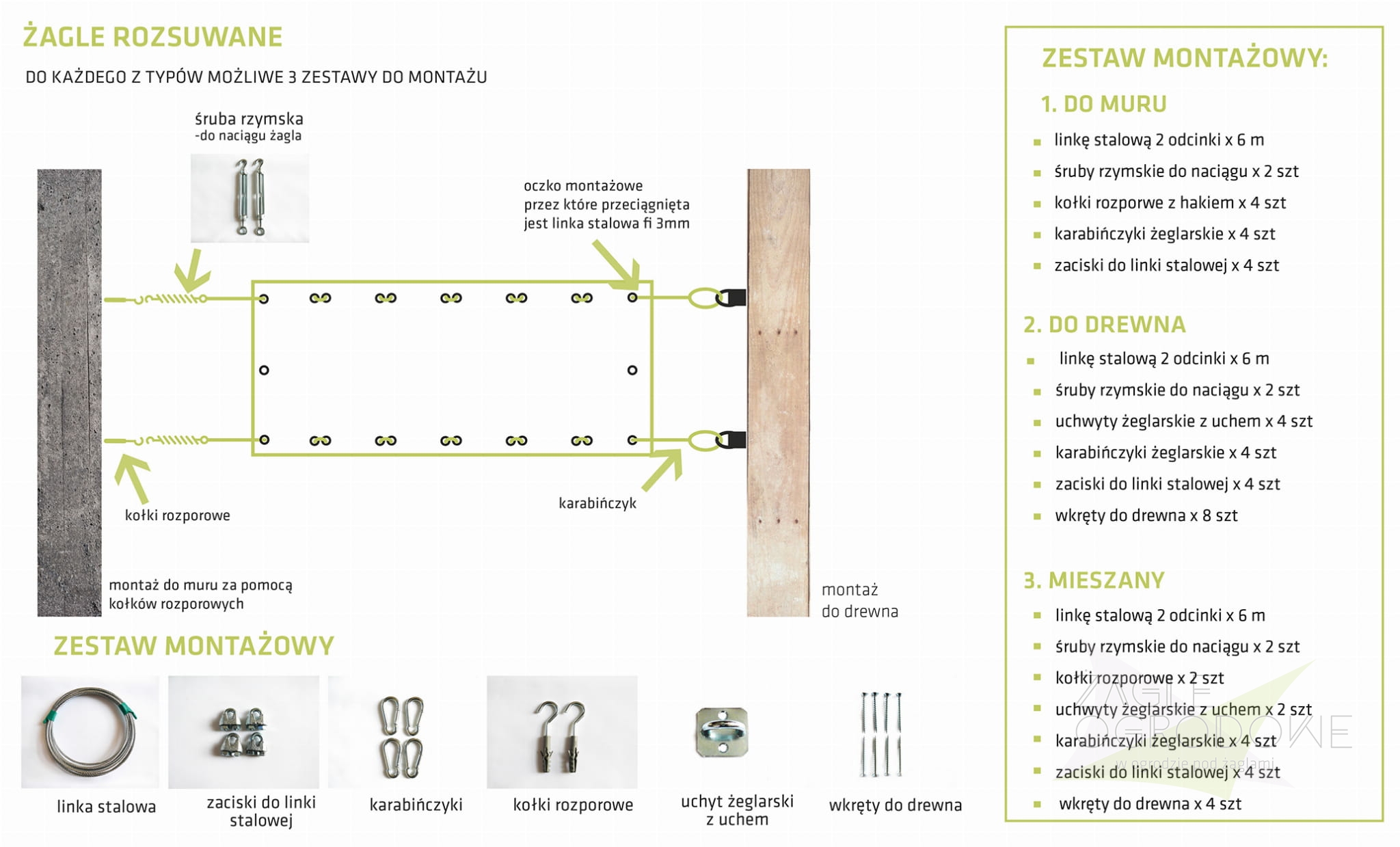 Los accesorios de anclaje están disponibles en la sección de montaje de toldos vela: